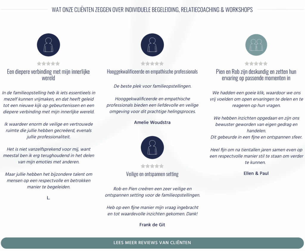 Met onze begeleiding ontstaat helderheid en stabiliteit, zowel binnen jezelf, in relaties als in teams en organisaties. Zo kan iedereen bijdragen op de plek die past en klopt, en klopt het hart van het geheel.