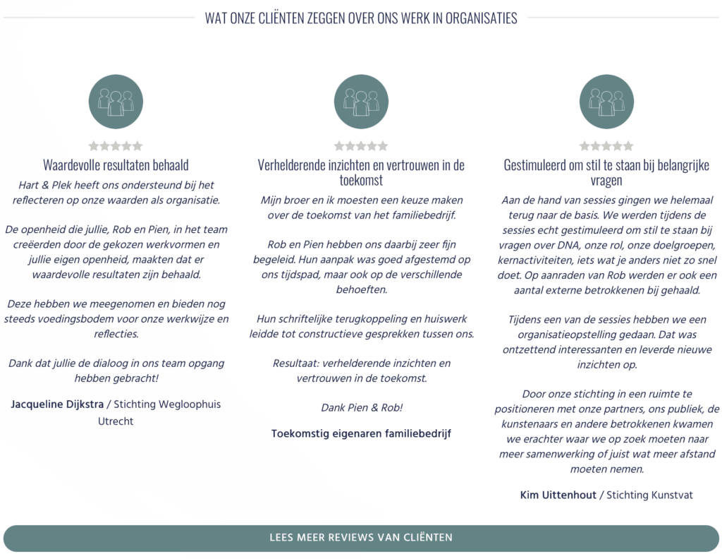 Hart & Plek begeleidt mensen, stellen en organisaties met een systemische aanpak. We maken patronen en dynamieken zichtbaar, zodat iedereen met hoofd en hart zijn eigen plek kan innemen, ten dienste van het geheel en de delen.